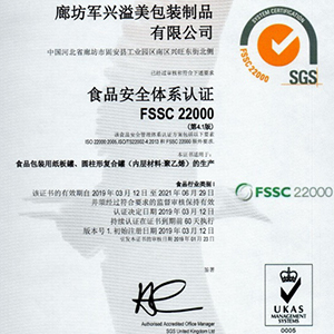 在同行業中,軍興溢美率先通過FSSC22000食品安全體系認證。
